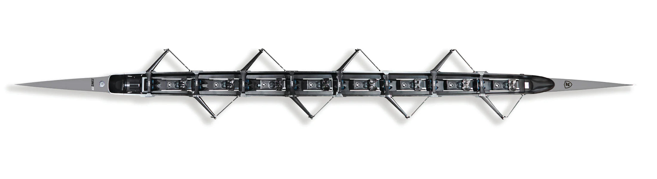 Sa coque privilégie la stabilité, avec une géométrie étudiée pour permettre aux rameurs de déployer toute leur puissance. Le résultat : une coque tolérante et performante, qui valorise autant les meilleurs rameurs que ceux en progression.